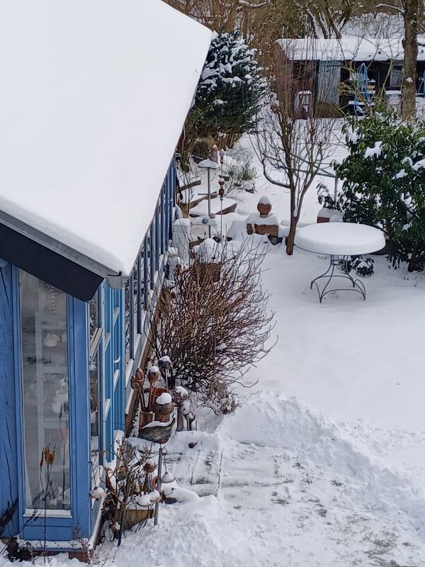 draußen – Schnee und kalter Wind drinnen – warm am Brennofen und kein Winterschlaf Bestellungen werden weiterhin bearbeitet zwischendurch ist Zeit für neue eigene Ideen und ihre Umsetzung telefonische Anmeldungen für Abholungen oder Besuche sind wegen Corona wichtig